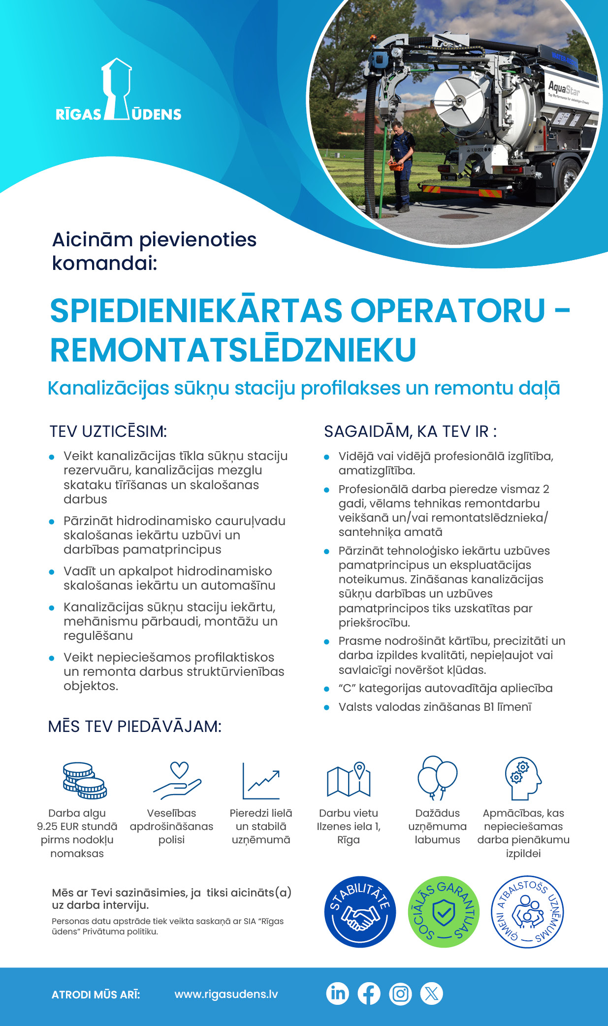 SIA "Rīgas ūdens" ir sabiedrība ar ierobežotu atbildību, kuras vienīgais īpašnieks ir Rīgas pilsētas pašvaldība. Tās darbības galvenais uzdevums ir nodrošināt pilsētas iedzīvotāju, organizāciju un uzņēmēju apgādi ar dzeramo ūdeni, kā arī novadīt un attīrīt notekūdeņus.