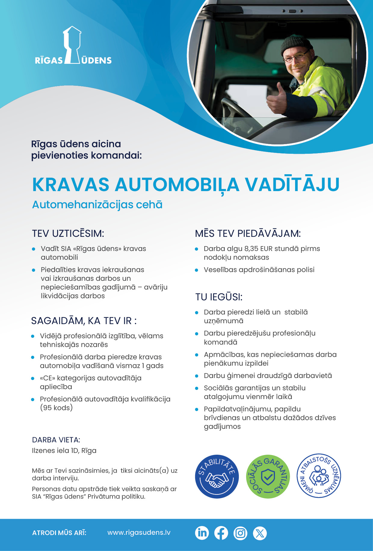 SIA "Rīgas ūdens" ir sabiedrība ar ierobežotu atbildību, kuras vienīgais īpašnieks ir Rīgas pilsētas pašvaldība. Tās darbības galvenais uzdevums ir nodrošināt pilsētas iedzīvotāju, organizāciju un uzņēmēju apgādi ar dzeramo ūdeni, kā arī novadīt un attīrīt notekūdeņus.